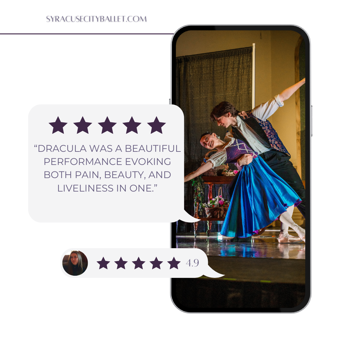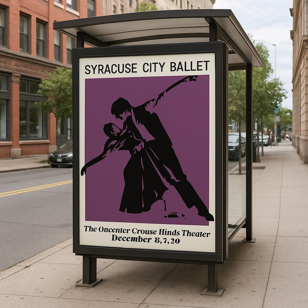 This portfolio section features my creative work from TNH’s partnership with Syracuse City Ballet. As the creative on this account, I focused on elevating their visual identity and strengthening brand consistency. The client came with clear goals, a refined logo and a defined color palette, and strict brand guidelines. I developed updated visual elements that honored their existing identity while creating a more cohesive foundation for future use.